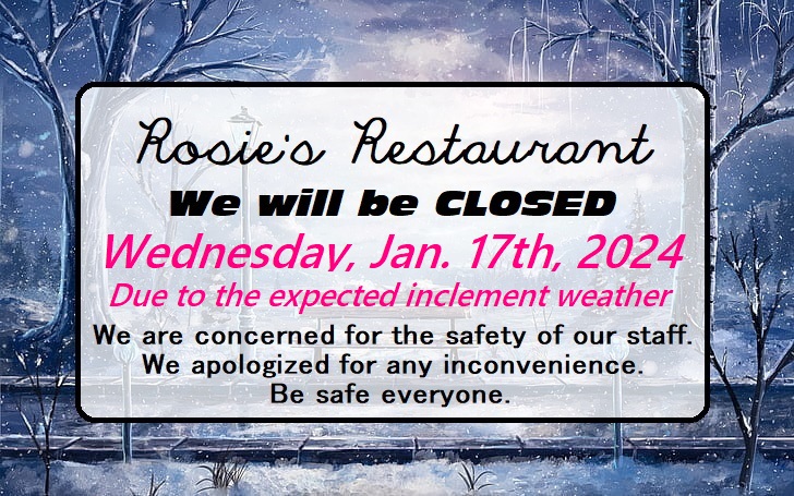 Due to the expected inclement weather for the safety of our staff.